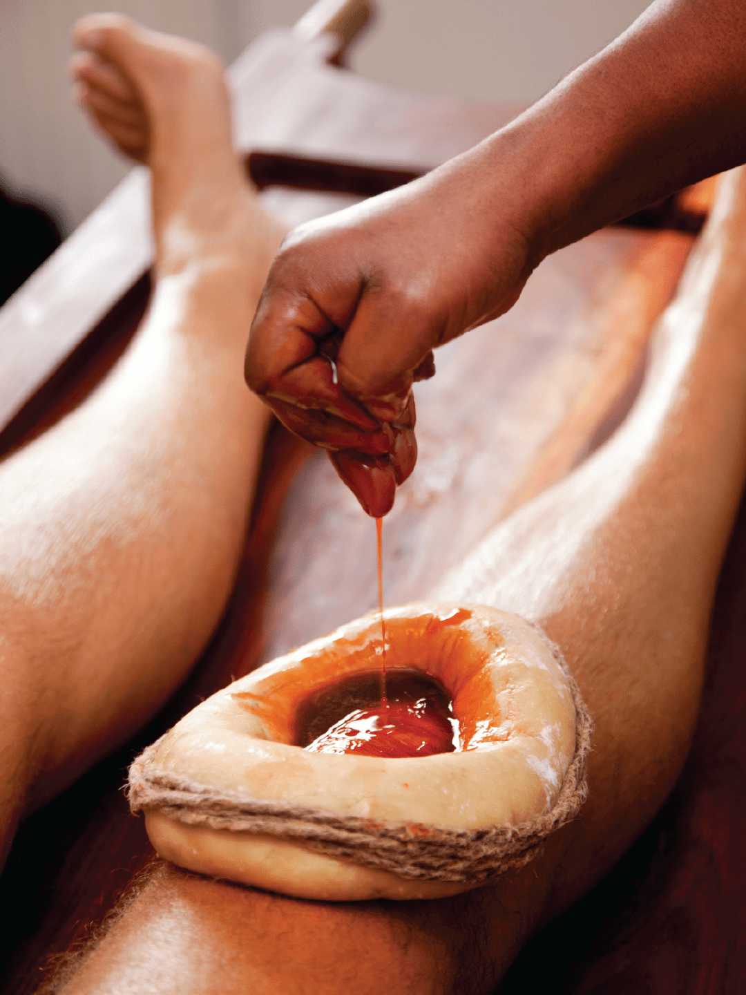 Targeted therapy for the knee joints, Janu Basti involves retaining warm medicated oils or ghee over the knee region. It helps relieve pain, stiffness, and arthritis-related conditions.