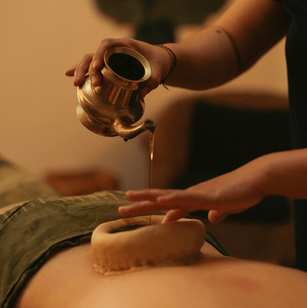 A localized therapy for the lower back and spine, where warm medicated oils, ghee, or decoctions are retained in a specially prepared well over the lumbar region. It is highly beneficial for back pain, sciatica, and spinal disorders.